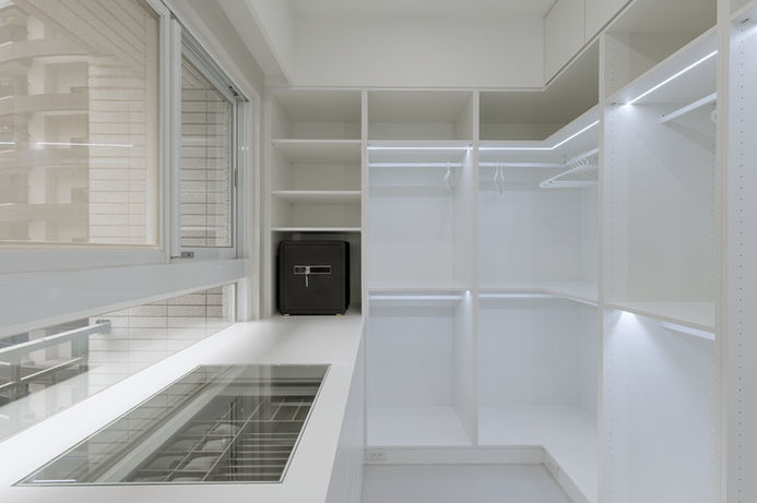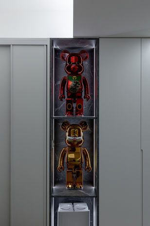 針對屋主珍藏的公仔,我們規劃了專屬的背光展示櫃。透過玻璃隔層與內崁燈條,讓每一尊公仔都像藝廊裡的展品一樣奪目。